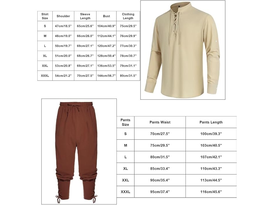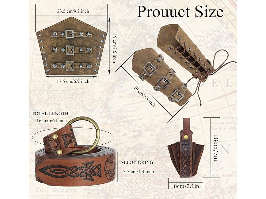 Ongeopend, Geplaimir Middeleeuws kostuum voor heren, Viking, renaissance, victoriaans, piraten, steampunk, cosplay, veterhemd, top met accessoires, Vikingbroek, PU-leder, O-ringriem, Large , B0CMV6CJ4P