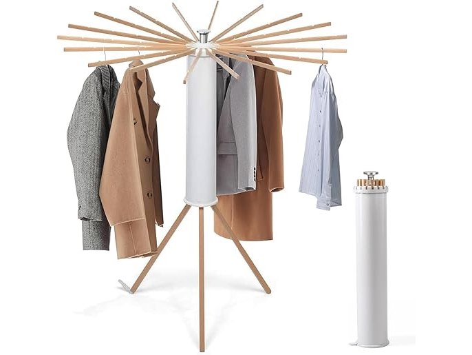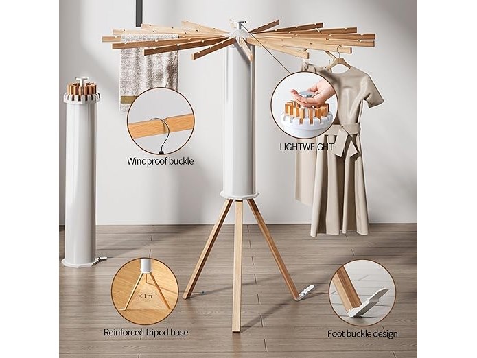 Ongebruikt, volledig, ok, Rigwarl Octopus Droogrek voor kleding, ruimtebesparend, opvouwbaar, 360 graden draaibaar, Airer 16 houten inklapbare stangarmen, wasdroger, paardenvloer staande statief hanger houder cilinderstandaard, B0CMTLQMJD