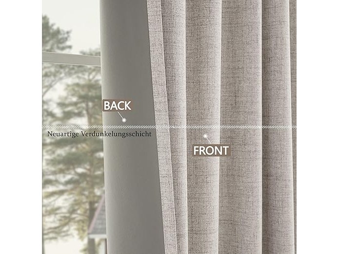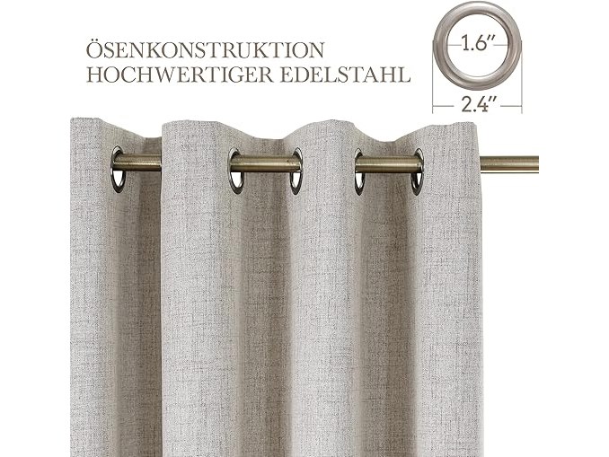 Ongebruikt, ok, CUCRAF Gordijnen, 100% ondoorzichtig, linnen, met ringen, verduisteringsgordijnen, grijs-wit, 214 x 132 cm (h x b), set van 2, thermogordijn, koudebescherming, geluidsisolatie, gordijn voor woonkamer, B0D37NMX4R