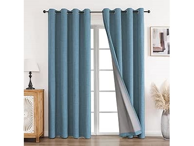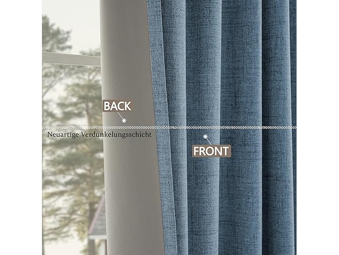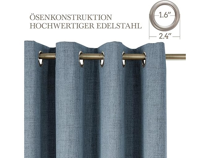 Ongebruikt, ok, CUCRAF Gordijnen, 100% ondoorzichtig, linnen, met ringen, verduisteringsgordijnen, hemelsblauw, H 214 x B 132 cm, set van 2, thermogordijn, koudebescherming, geluidsisolatie, gordijn voor woonkamer, B0D37S1G5X