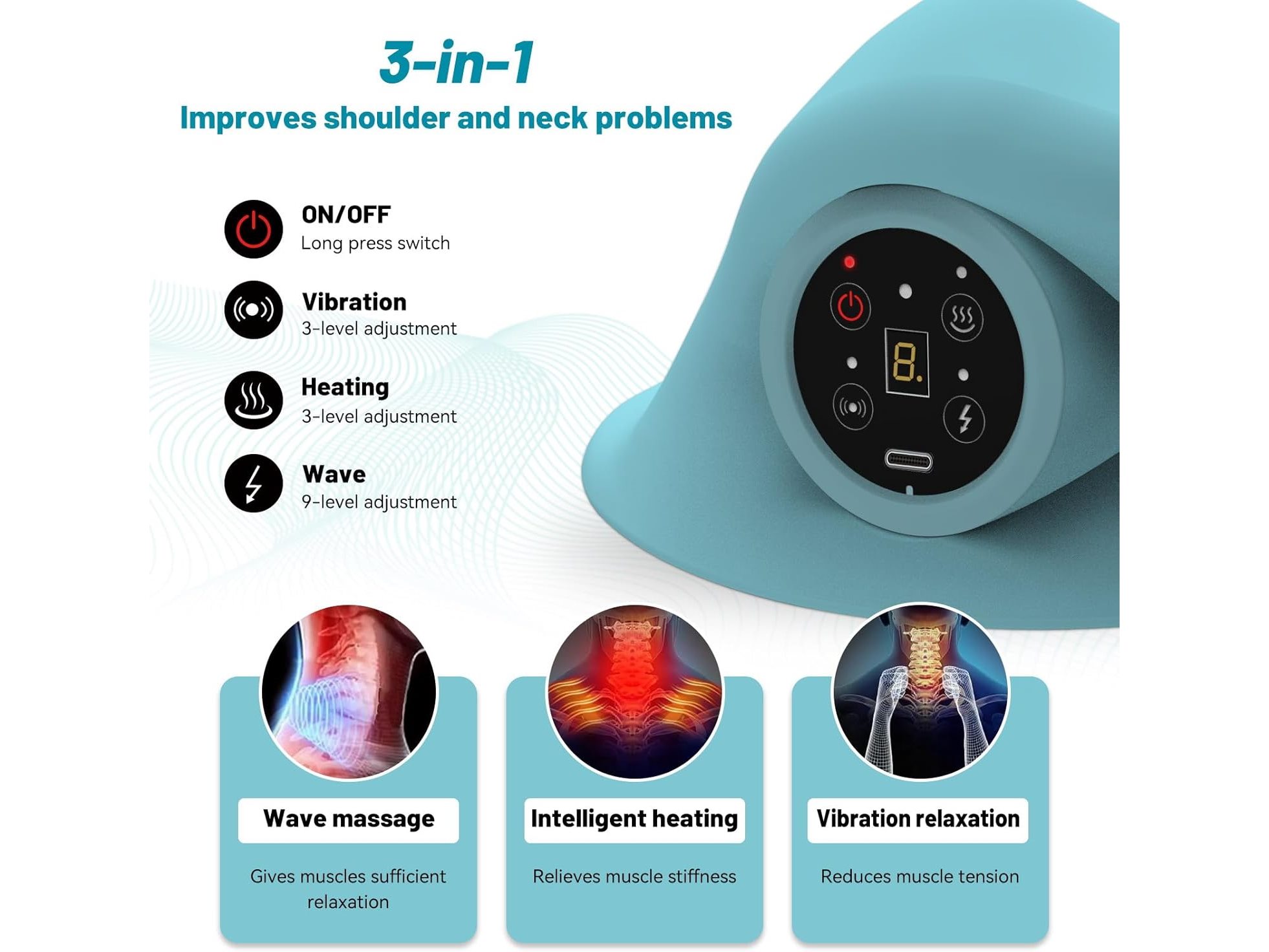 Ongeopend, Nekmassageapparaat met warmte & EMS – Draagbaar 26° ergonomisch model met infraroodafstandsbediening B0FHW46B79