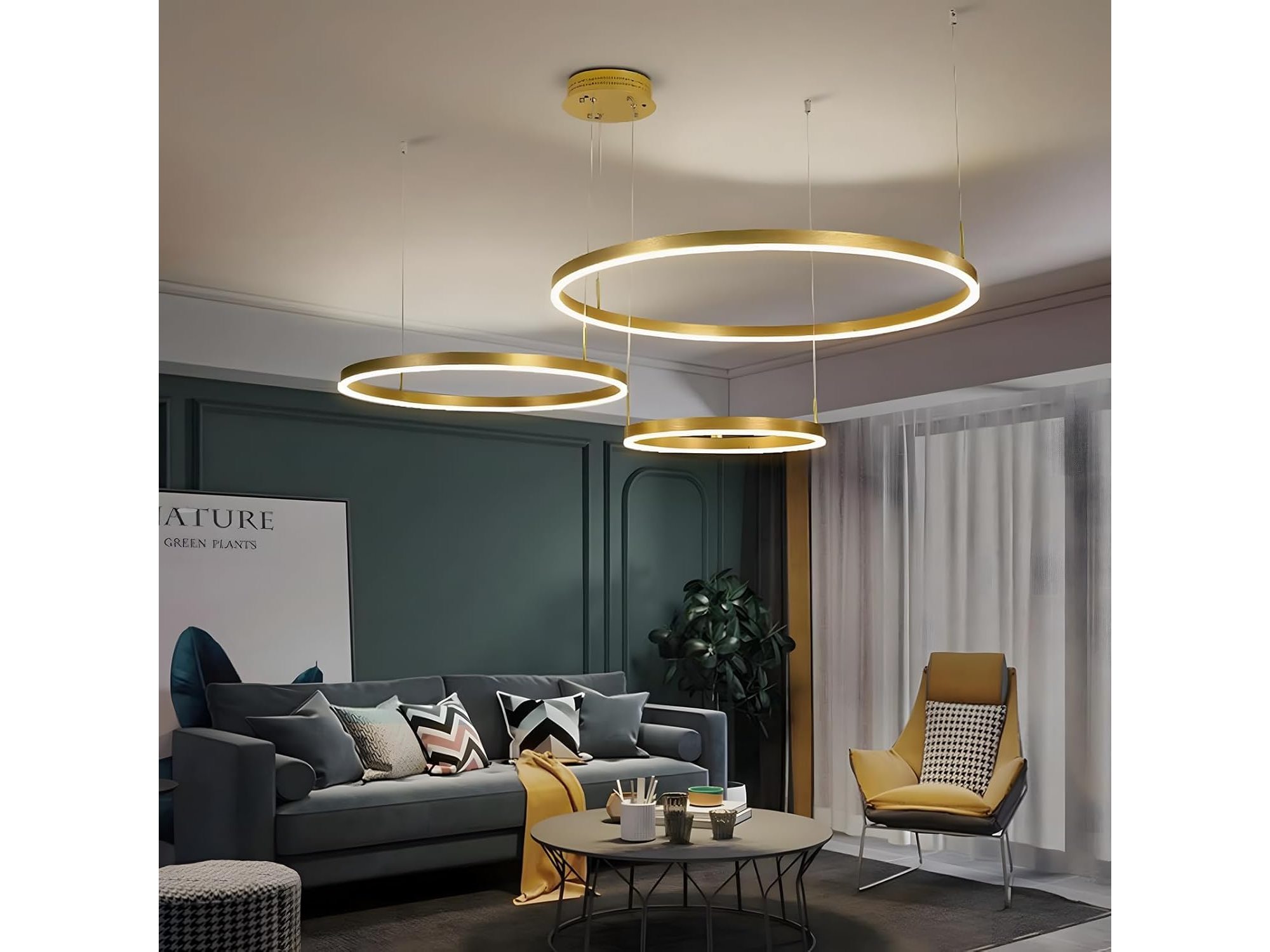 Ongebruikt, getest en werkend, ok, vijzen en pluggen ontbreken, Wayluoung LED Metalen Kroonluchter | 3 Cirkels 40+60+80cm | 90W Ringen Plafond Hanglamp, Dimbare Afstandsbediening 3000-6000K, Acryl Schaduw Hanglamp, Woonkamer Slaapkamer Foyer Eetkamer Keuken, goud, B0CWY5KCCB