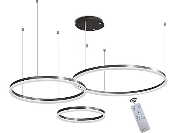 Ongebruikt, getest en werkend, volledig, ok, Wayluoung LED Metalen Kroonluchter | 3 Cirkels 40+60+80cm | 90W Ringen Plafond Hanglamp, Dimbare Afstandsbediening 3000-6000K, Acryl Schaduw Hanglamp, Woonkamer Slaapkamer Foyer Eetkamer Keuken, B0CWY3ZC1G