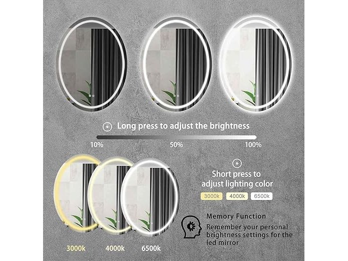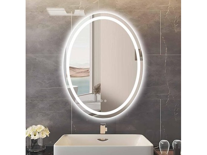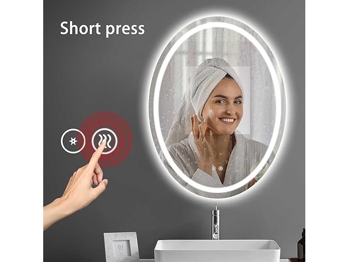 Gebruikssporen, getest en werkend, enkel spiegel, beschadigde verpakking, Sunrik Led-badkamerspiegel, 50 x 70 cm, ovale badkamerspiegel met verlichting, dimbaar, 3 lichtkleuren, aanraakschakelaar, ontneveling