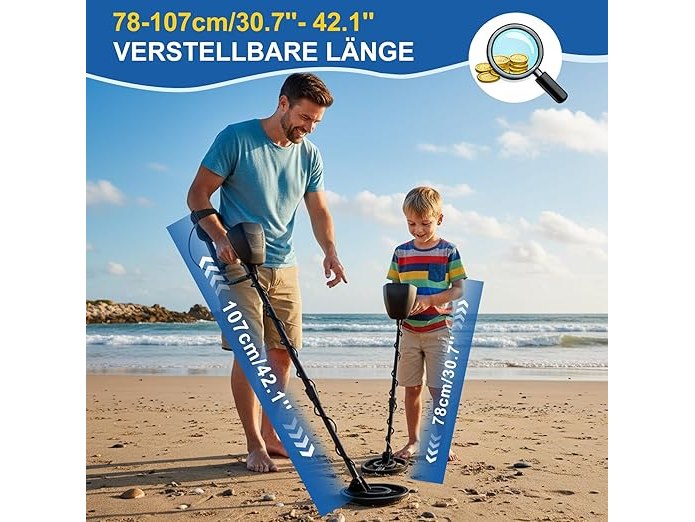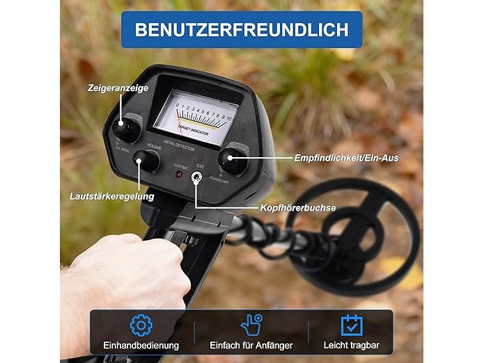 Ongebruikt, getest en werkend, ok, Metaaldetector voor kinderen, professionele metaaldetector voor kinderen 12+, precisiefunctie en DISC-modus, max. 1 m diepteherkenning [zonder batterijen]