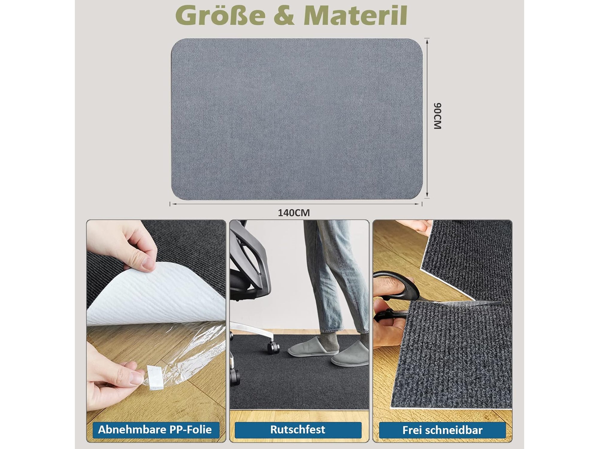 Dfionc bureaustoelmat, 90 x 140 cm grijs