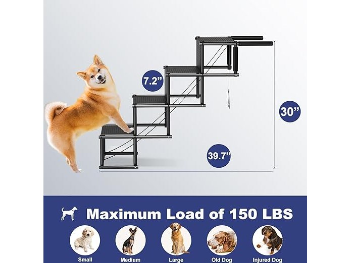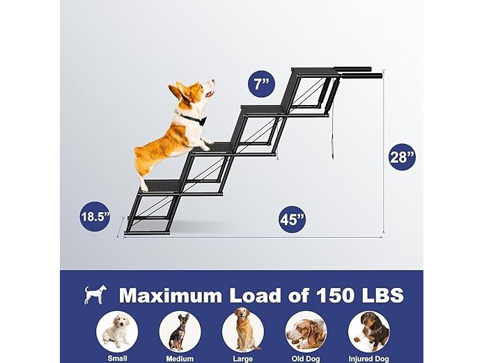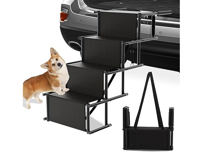 Ongebruikt, ok, licht beschadigde verpakking, HEYOUTH Opvouwbare hondhelling, hondentrap met 4 treden, ladder voor grote honden, tot 80 kg, antislip oppervlak, voor alle voertuigen, B0DF2DN15Y