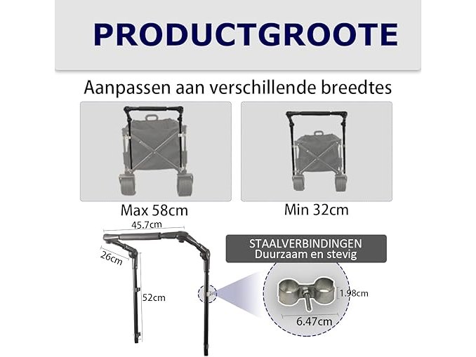 Ongebruikt, ok, Uittrekbare trolleystang Universele opvouwbare kar duwbeugelbevestiging met minerale connectoren, opvouwbare duw-trekstang voor opvouwbare kar/Costco-kar/tuinkarren/kinderwagen, B0CZJ1RL6P