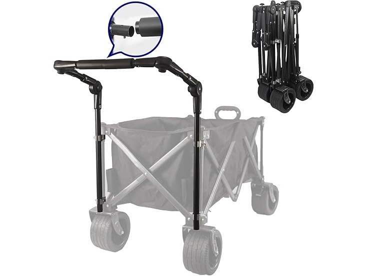 Minieme gebruikssporen, ok, originele verpakking ontbreekt, Uittrekbare trolleystang Universele opvouwbare kar duwbeugelbevestiging met minerale connectoren, opvouwbare duw-trekstang voor opvouwbare kar/Costco-kar/tuinkarren/kinderwagen, B0CZJ1RL6P