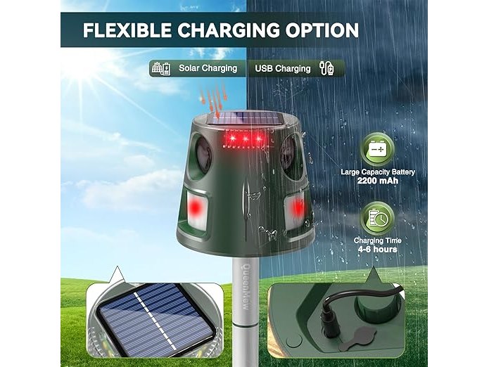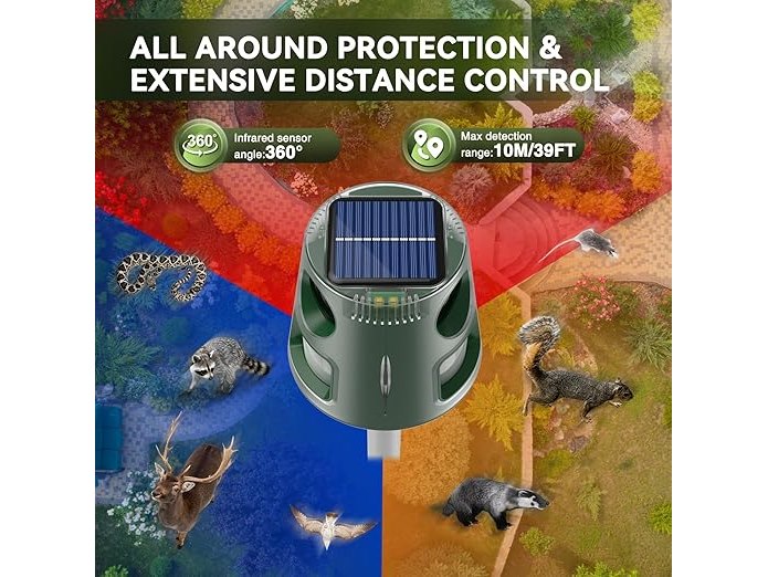 Ongebruikt, getest en werkend, ok, Bubbacare Ultrasone dierenverjager op zonne-energie, 32 ft, 5 modi, vogelafweer, opladen via USB, kattenafweermiddel voor tuin, duif, konijn, muis, B0DSJLC32K