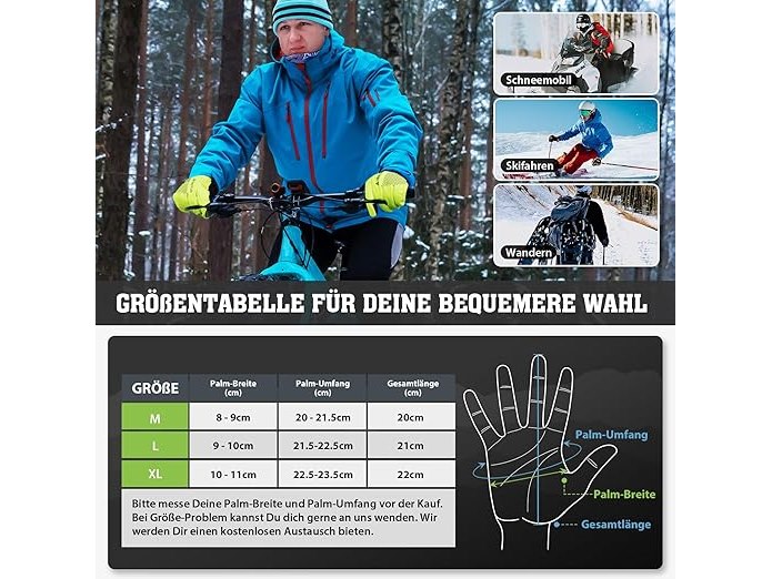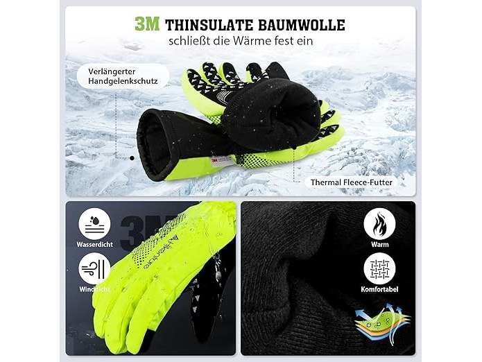 Ongebruikt, ok, HIKENTURE Winterhandschoenen XL met 3M Thinsulate isolatie, warme fietshandschoenen voor dames en heren, waterdichte winterhandschoenen, touchscreen-compatibel, fluo geel, B0B4D9XRH2