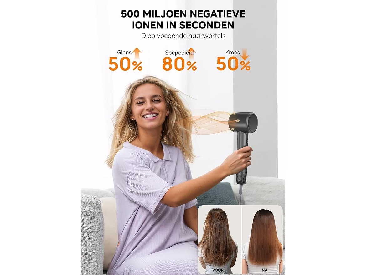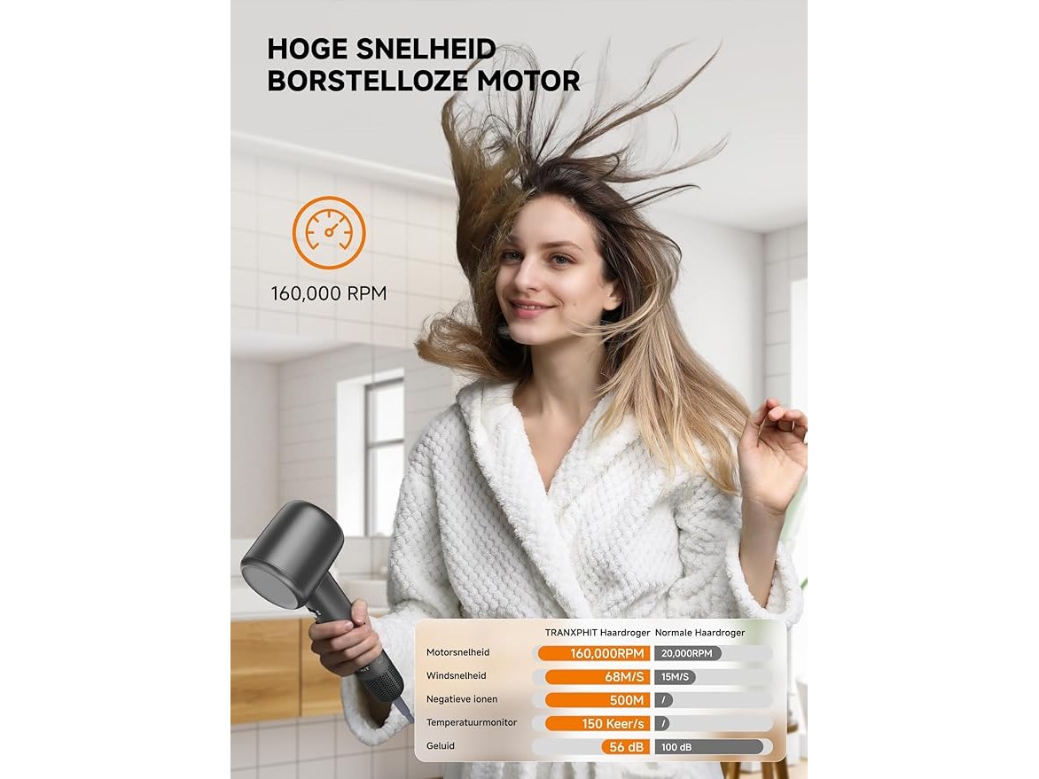 Ongeopend, in seal, Tranxphit Haardroger met Hoge Snelheid: 160, 000 RPM Hoge Snelheid Brushless Motor Föhn, 500 Miljoen Negatieve Ionische Haardroger, Low Noise Reizen Haardrogers Voor Vrouwen en Mannen met Diffuser, B0F12Z7T8Y