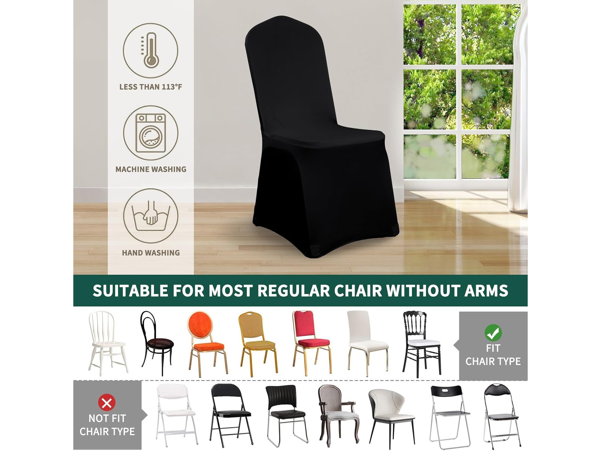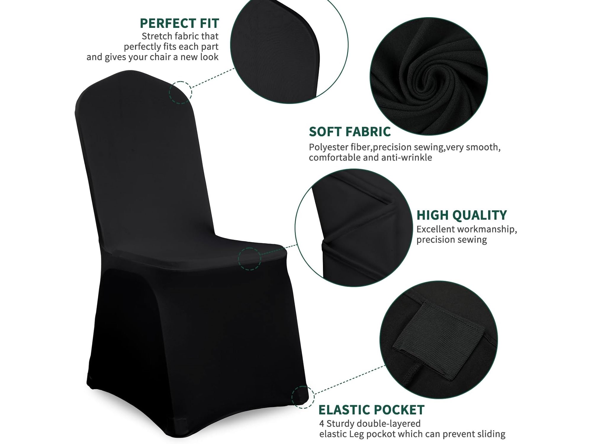 Ongeopend, in seal, Showgeous 20 stuks stoelhoezen zwart polyester spandex lycra stretch stoelhoes eetkamer bruiloft stoelhoezen universele wasbare beschermende stoelhoezen voor bruiloftsfeest banket decoratiehoezen, B0DCS4D2S3