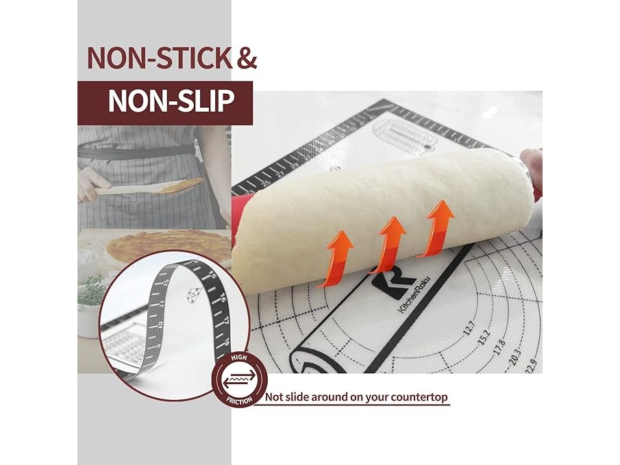 Ongeopend, in seal, Siliconen bakmat extra groot, afmetingen anti-aanbak siliconenmat met meting, deegmat, bakonderlegger voor oven (grijs, 91 x 61 cm), B09LV98JMM