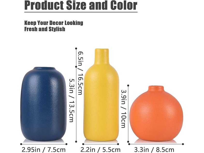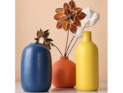 Ongeopend, Keramische vaas set van 3, kleine bloemenvazen - geel, oranje, blauw (A) , B0BFL5C2NS