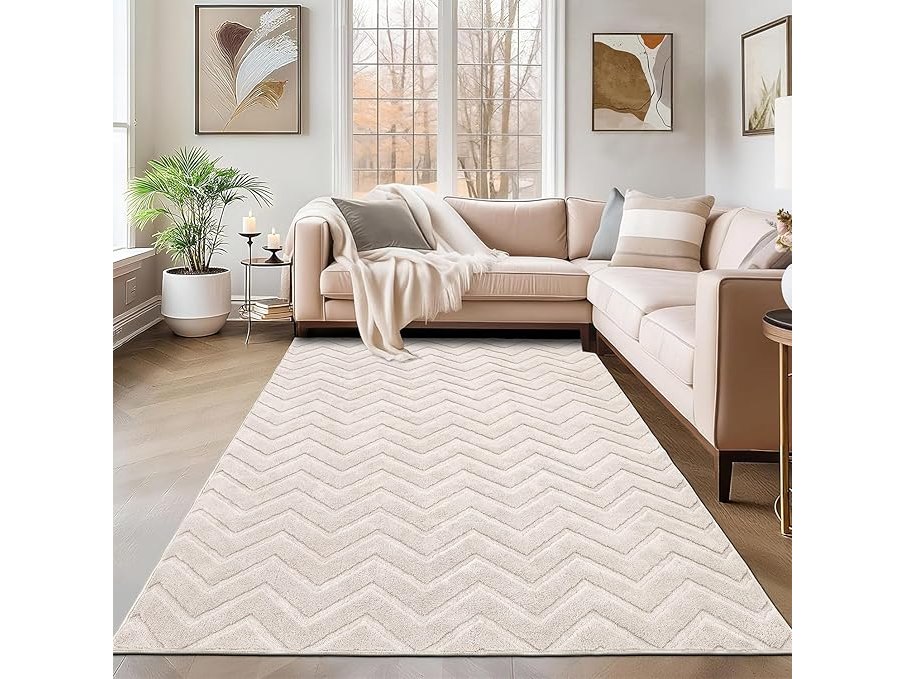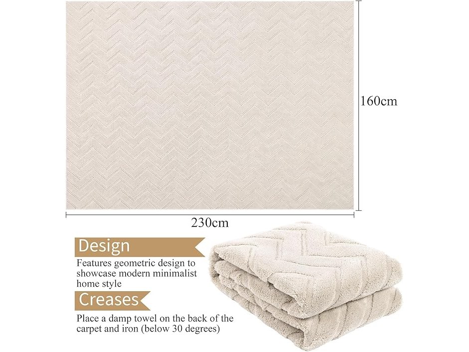 Ongebruikt, originele verpakking ontbreekt, ok, SHACOS Vloerkleed, Modern Crèmekleurig Tapijt Voor Woonkamer En Slaapkamer, Groot 160 x 230 cm, Machinewasbaar, Zacht, Scandinavisch Geometrisch Patroon, Woondecoratie,B0DB1YHCF2