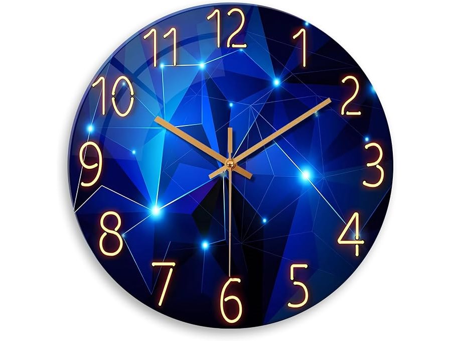 Ongeopend, ok, Constantplanet 50 cm Glazen Klok voor Woonkamer Kantoor Blauw Batterij Werkt Grote Wandklok, B0DRX186M9