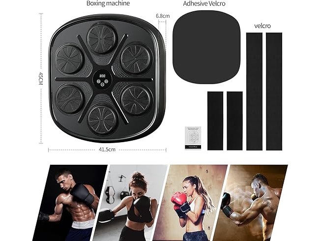 Ongeopend, in seal, Muziekboksmachine, led-bokszak, wandhouder, boksdoel, muziek, boksmachine, bluetooth, 9 snelheidsmodi en telmodus, stressvermindering en focus, behendigheidstraining, voor volwassenen en kinderen, B0D978JNHB
