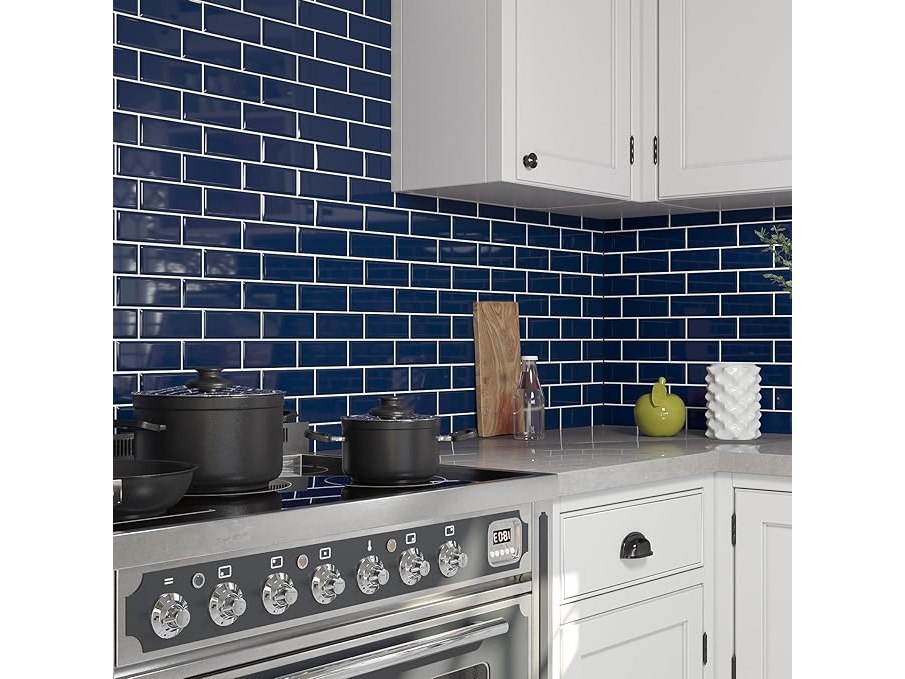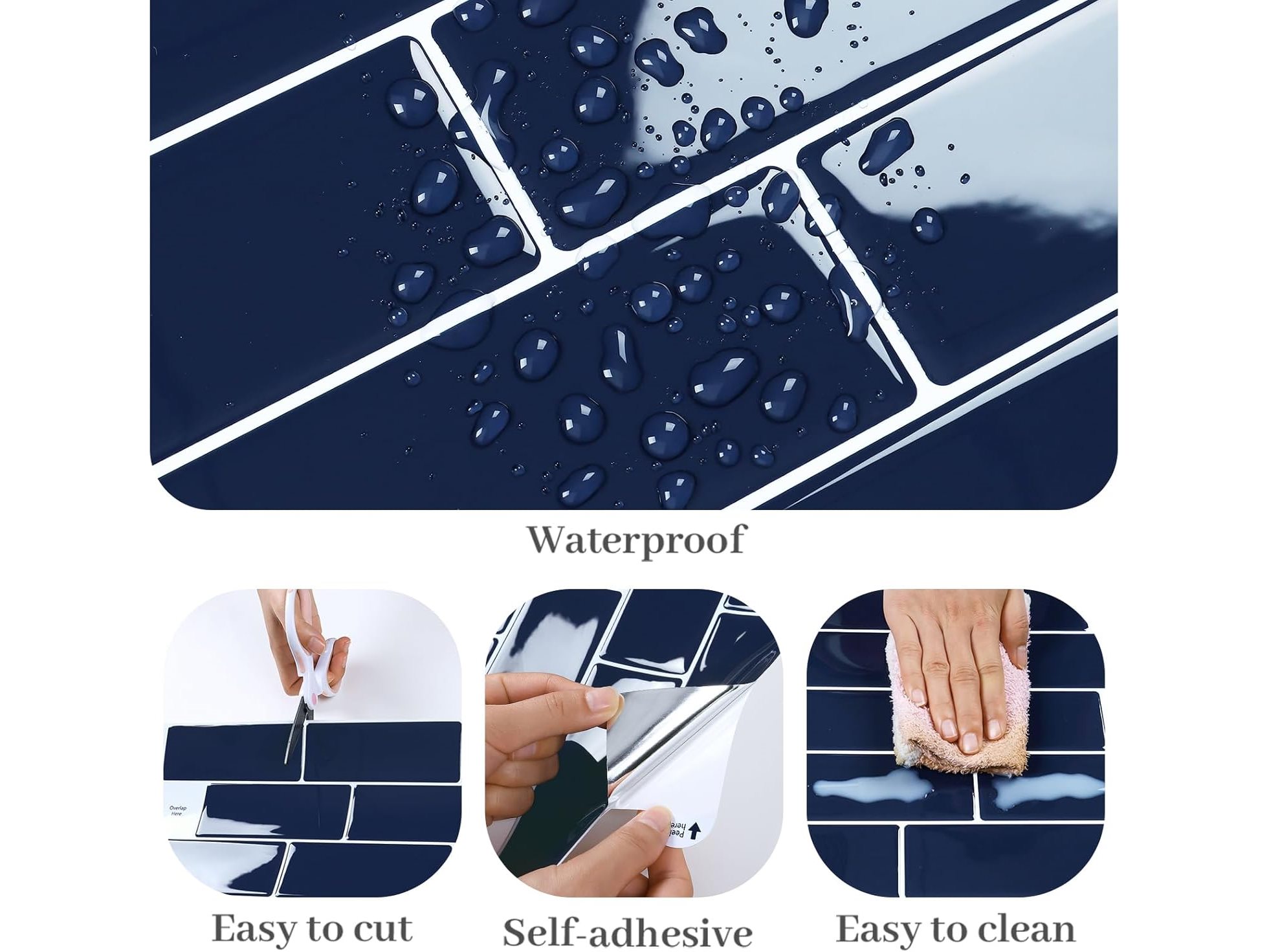 Ongeopend, in seal, 4 x VaryPaper Marineblauwe keukenwandtegels, zelfklevende badkamertegelstickers 30,5 cm x 30,5 cm, 20 stuks, afpellen en opplakken, achterwand voor keuken, stok, badkamertegels, B0CY1ZBPFH