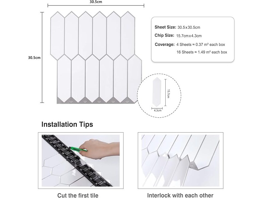 Ongeopend, in seal, 4 x CRE8TIVE 16 stuks witte zelfklevende 3D zelfklevende keramische vinyl wandtegels moderne spatwand voor keuken, badkamer, gootsteen, wasruimte - 30,5 cm x 30,5 cm, B0CY2JN75R
