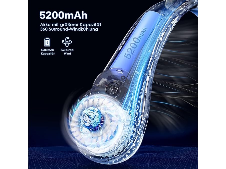 Ongebruikt, getest en werkend, ok, AmyFei draagbare ventilator, stille mini USB-halsventilator zonder bladeren, 3 snelheden, 5200 mAh halsventilator, geschikt voor buitensporten, thuis, op kantoor, op de camping, op reis, B0BYS8J2V4
