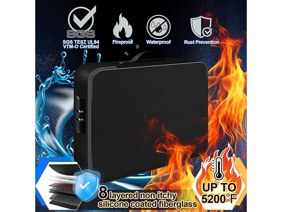Ongeopend, ok, Vuurvaste documententas met slot, vuurvaste geldcassette, waterdicht met handgreep, voor reizen en thuis, voor documenten, certificaten, paspoort, B0DPZ1KX34