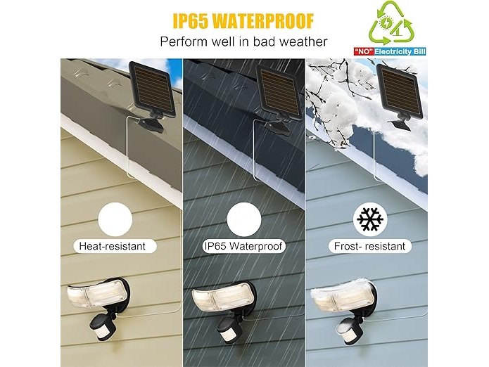 Ongeopend, in seal, ZOFO Solarlamp met bewegingsmelder, Voor Buiten Zonnelampen Zonne Bewegingssensor Lamp 1800 Lumen Buiten Zonne Geleide Licht met 2 Koppen, 5000K, IP65, het Openlucht Zonne Licht wandlamp voor garage, B0B3DTTJSJ