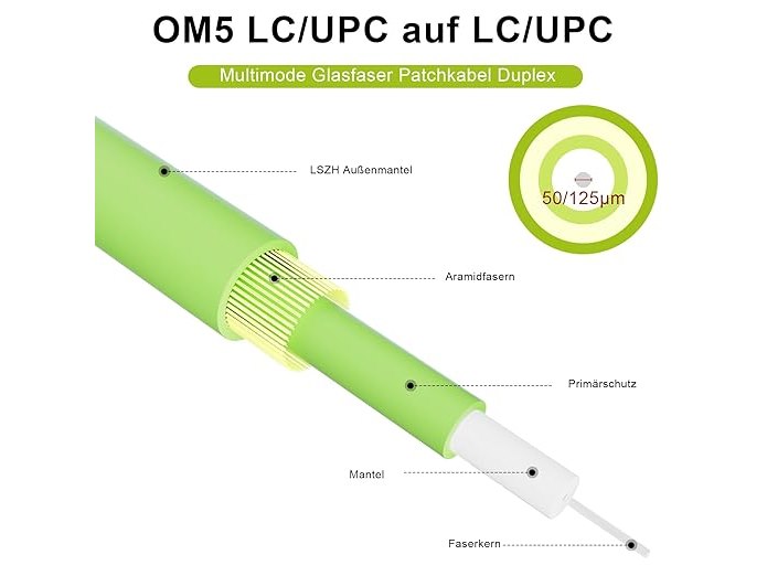 Ongeopend, OM5 Fiber LC naar LC 20M/66FT, 40GB/100GB Fiber Optic Multimode Duplex 50/125um, 2mm LSZH B0DX7KZF5Z