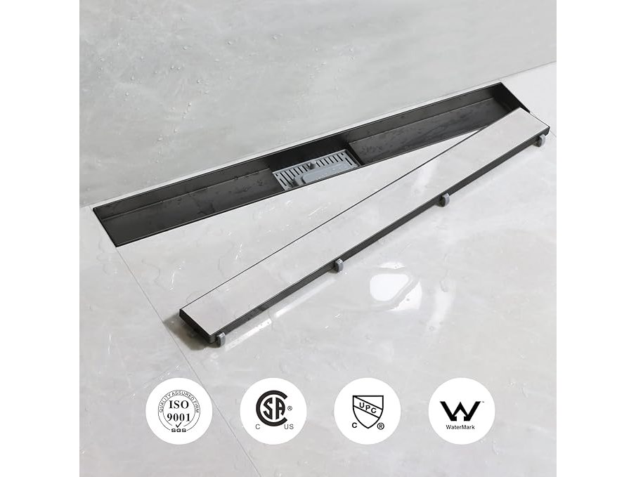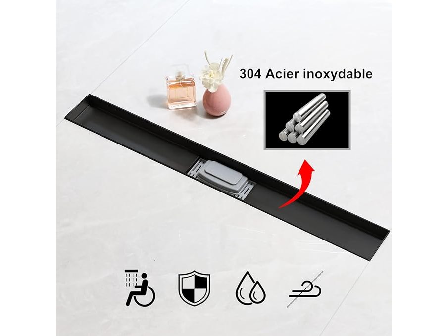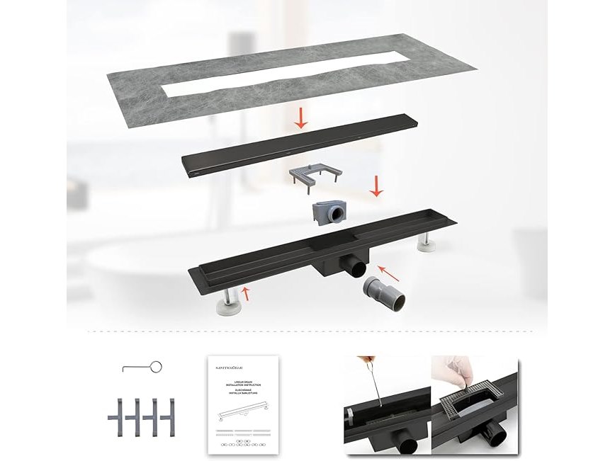 Ongeopend, ok, SaniteModar Doucheafvoer Zwart 30 cm, 2-in-1 Paneel Douchegoot met Sifon, Deodorant en Haarfilter, Doucheafvoer van Roestvrij Staal, B0CQQWH4DP