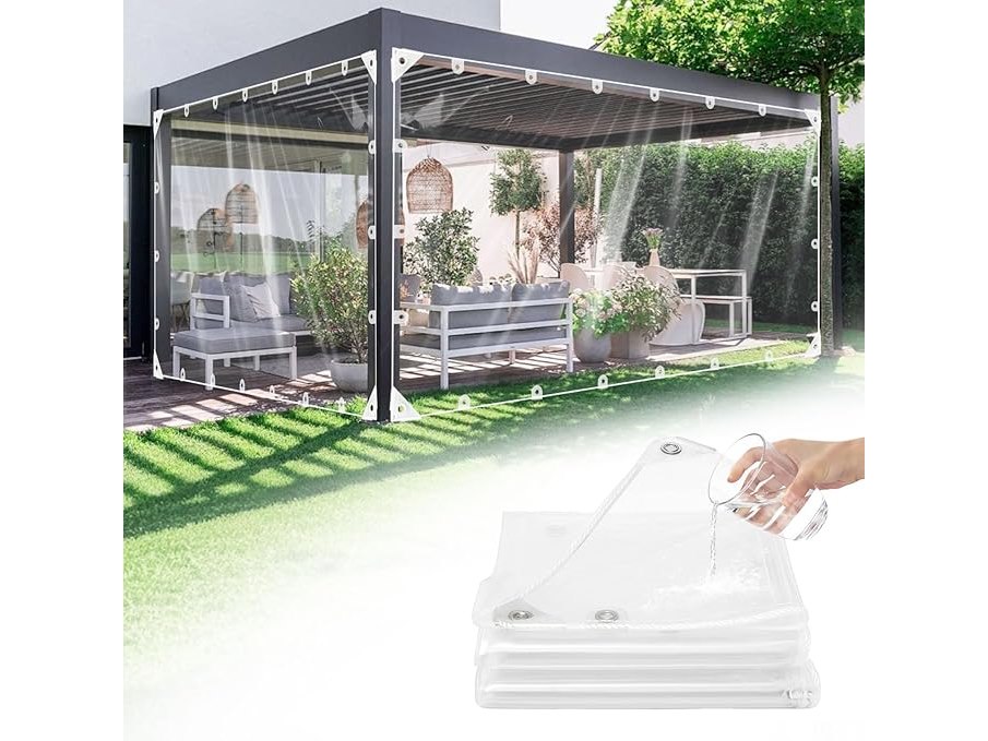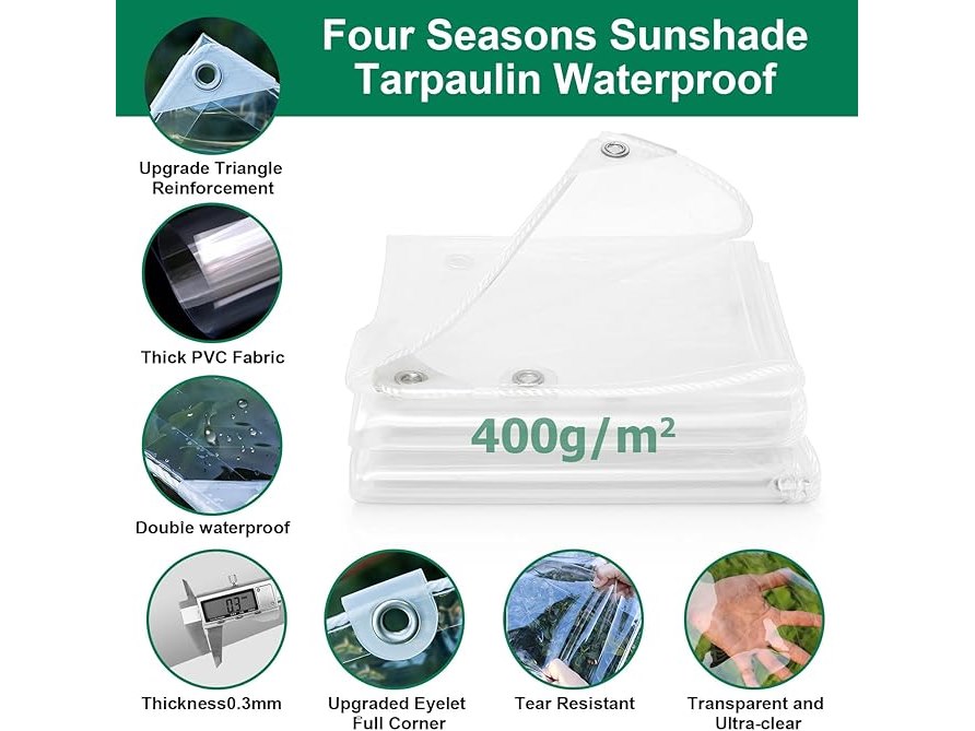 Ongebruikt, volledig, ok, Dekzeil, waterdicht, robuust, verbeterd, doorzichtig pvc-dekzeil, 2 x 3 m, verdikt 400 g/m², grote dekzeilen, vorstbestendig, winddicht, transparant zeil voor buiten,B0F8NV196Y