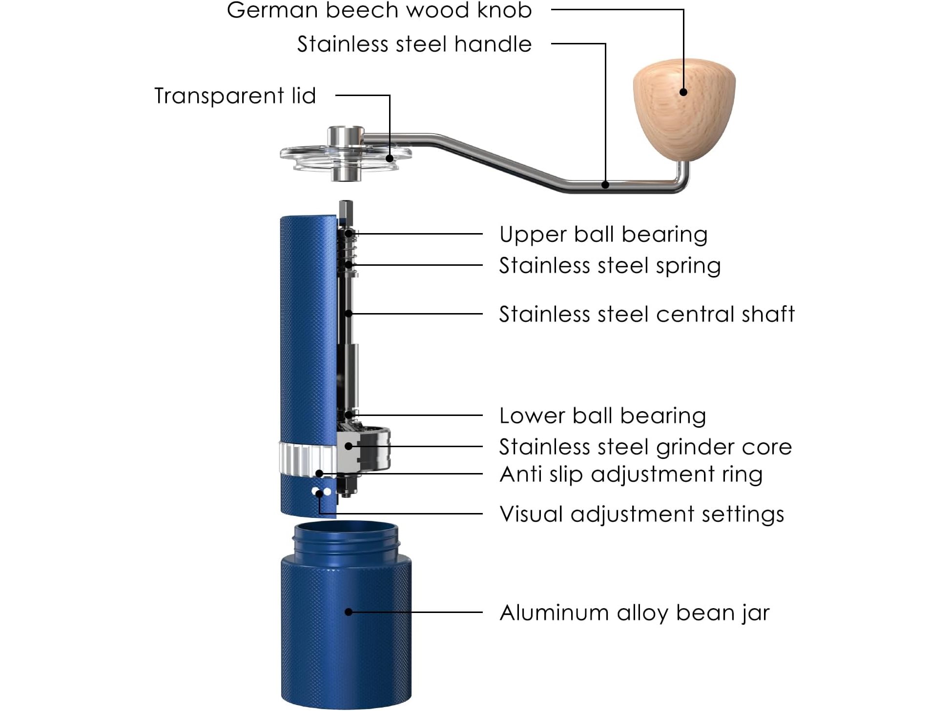 Ongeopend, ok, Vzaahu Handmatige koffiemolen,Externe Verstelbare Grofheid 6 Niveaus,CNC Roestvrij Staal Conische Burr Core,Kleur Blauw, Diamanten Aluminium Lichaam, Beuken Bandle, B0CCY7ZQTC