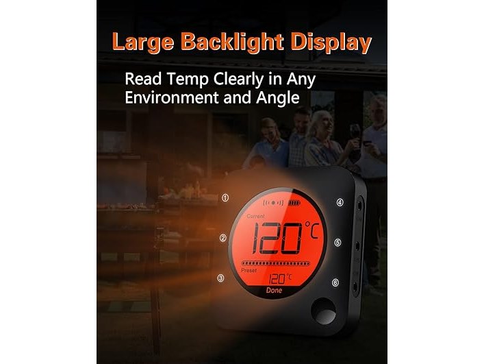 Ongeopend, ok, BFOUR Keuken Bluetooth thermometer digitale grillthermometer met 6 temperatuursensoren vleesthermometer met alarm gepolijste schaal voor grill BBQ, B07JHK8P9M