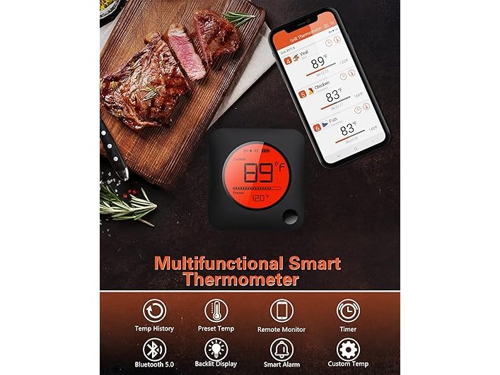 Ongeopend, ok, BFOUR Keuken Bluetooth thermometer digitale grillthermometer met 6 temperatuursensoren vleesthermometer met alarm gepolijste schaal voor grill BBQ, B07JHK8P9M