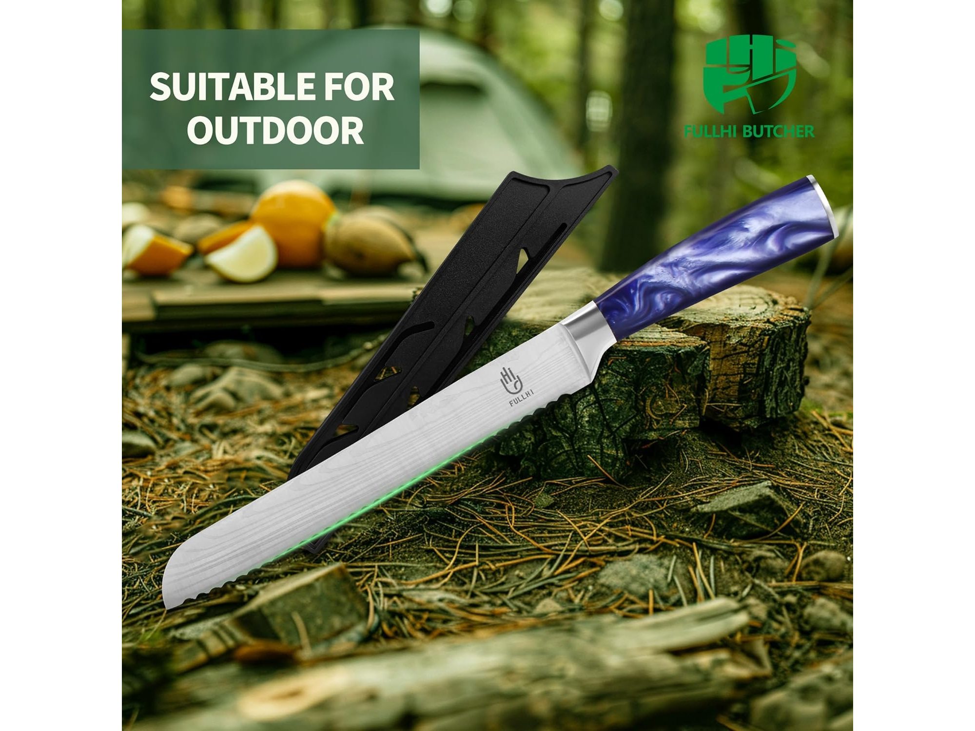 Ongeopend, ok, FULLHI Broodmes,Multi Colour 8 inch Japans Mes, Taartmes Roestvrij Staal Keukenmes met Schedebescherming (Paars Hars), B0D7ZSZQR8