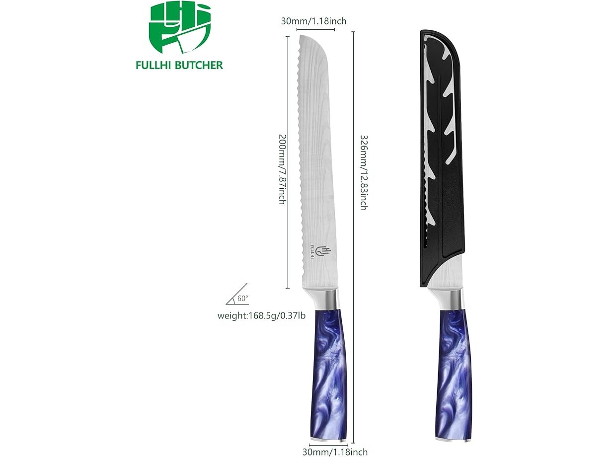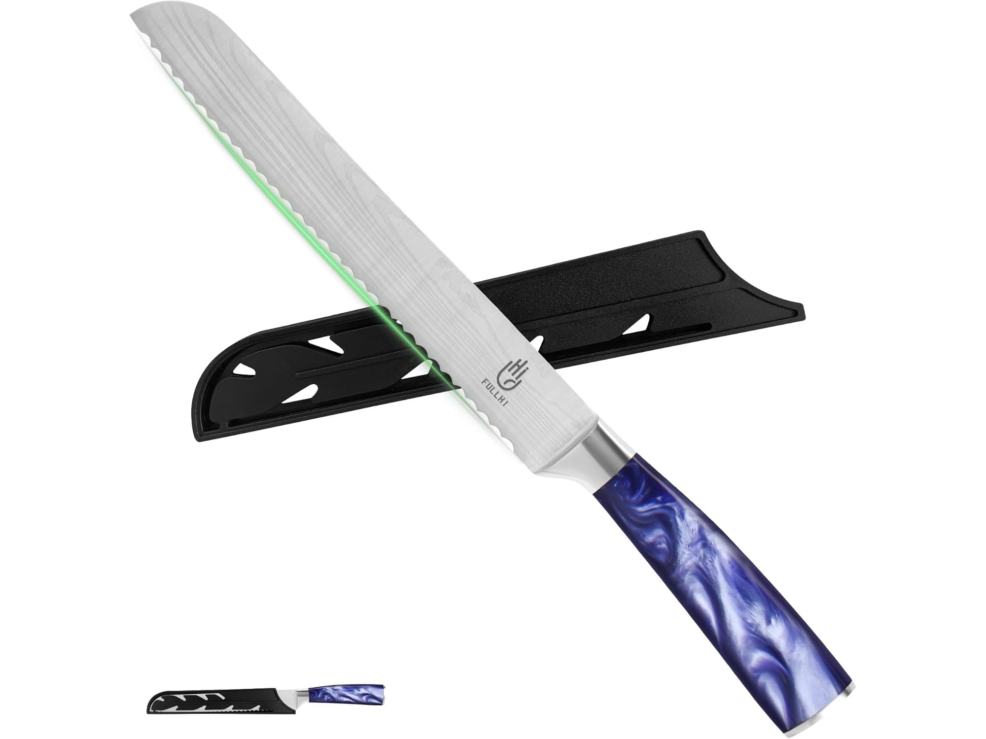 Ongeopend, ok, FULLHI Broodmes,Multi Colour 8 inch Japans Mes, Taartmes Roestvrij Staal Keukenmes met Schedebescherming (Paars Hars), B0D7ZSZQR8