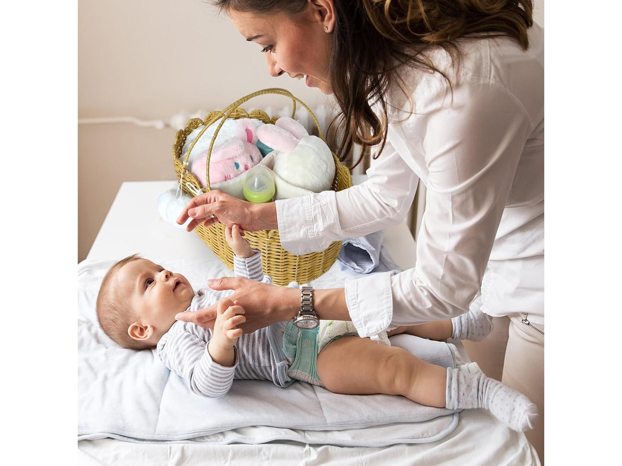 Ongeopend, in seal, Whemyreat Veelzijdige luiertas, organizer, handgemaakt rotan wikkelmand met 3 vakken, voor onderweg, luiertas voor meisjes, luiertas, draagbare luiertas, B0DK3DNWLH