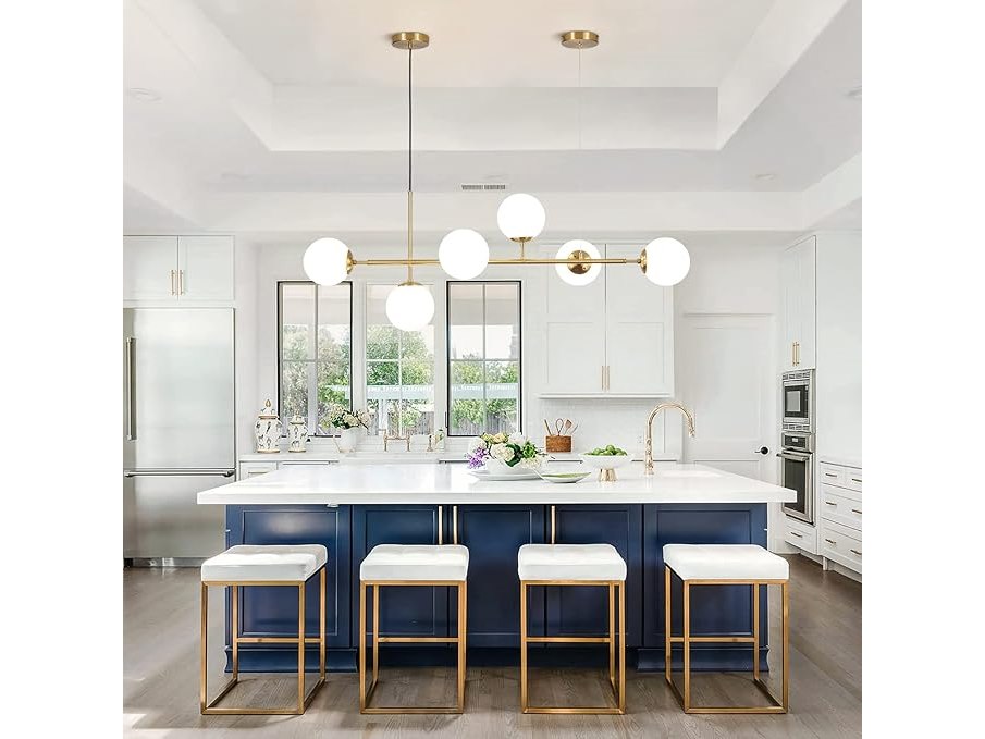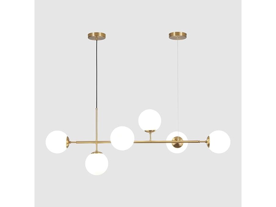 Ongebruikt, getest en werkend, volledig, ok, KCO Lighting Vintage glazen kroonluchter met 6 lampen voor woonkamer, moderne lineaire kroonluchter in witte bolvorm, gouden messing hanglamp uit het midden van de eeuw voor keuken ,B08YNTMLDQ