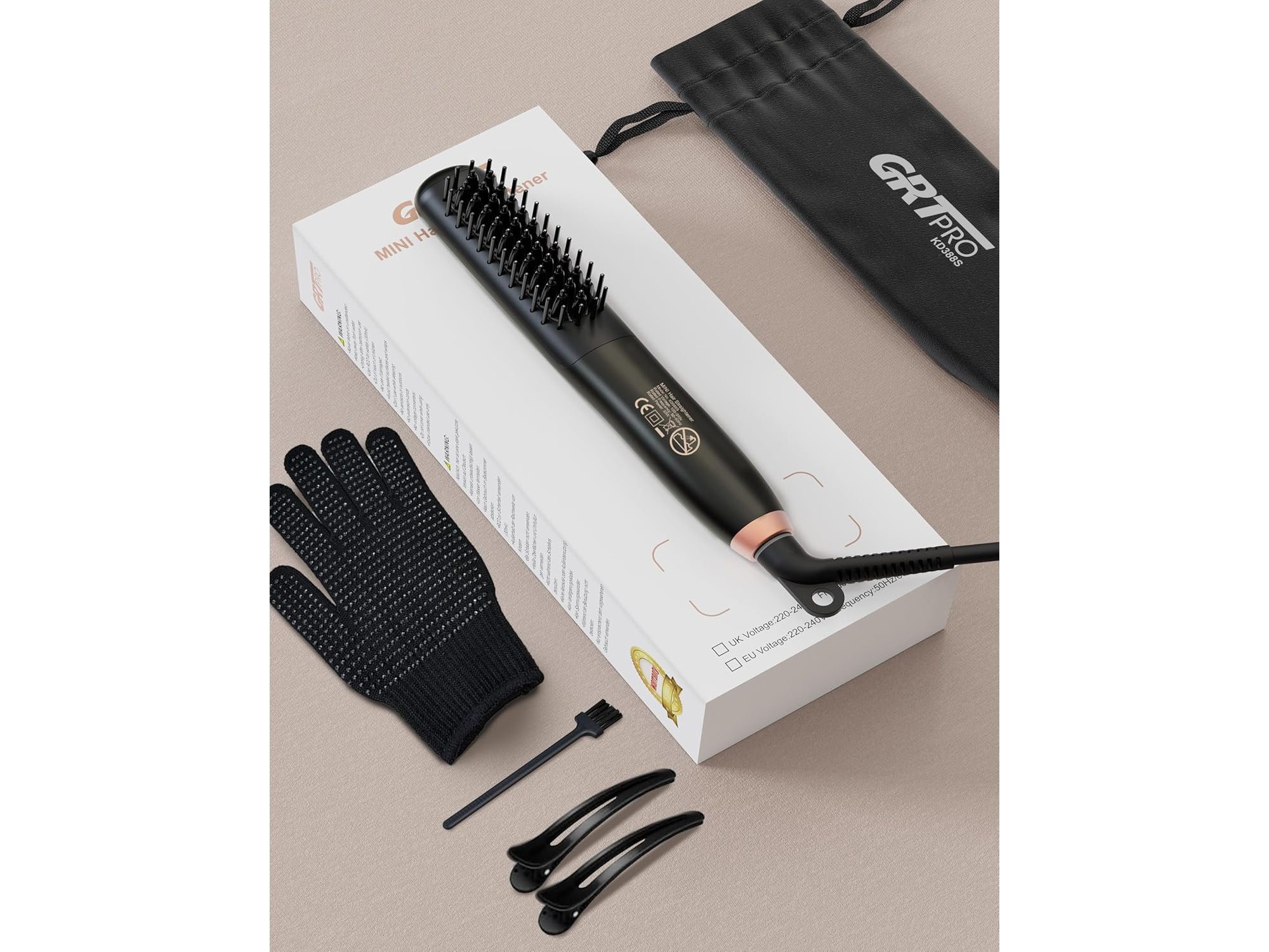Ongopend, in seal, Mini stijltangborstel, keramische stijltangen en stijlborstel, 2-in-1 voor vrouwen, snelle verwarming, lichtgewicht 200 g, 3 temperatuurinstellingen voor thuis, reizen, kort haar, B0DZCMFFHS