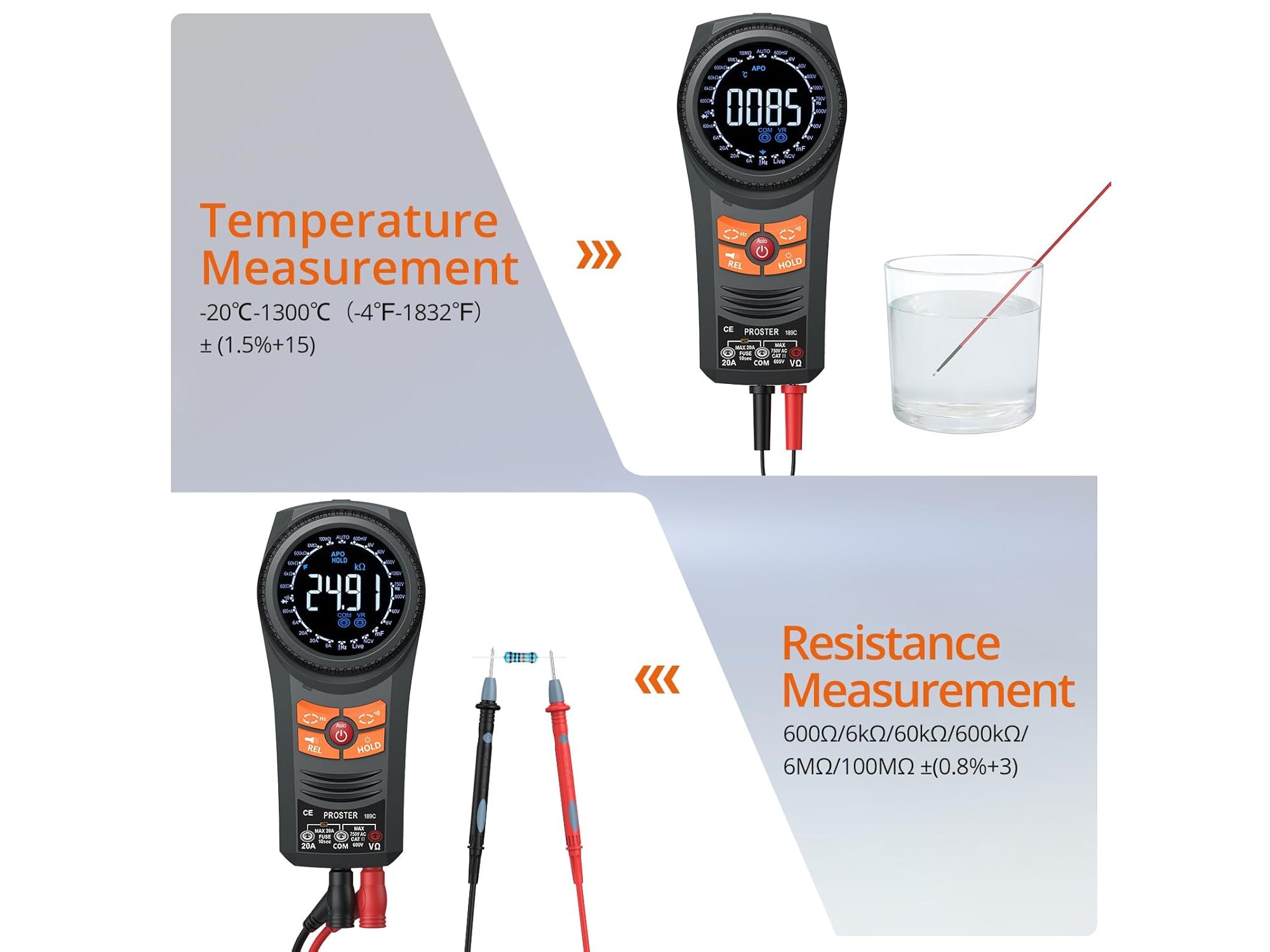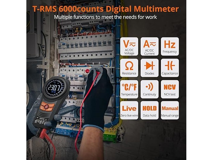 Ongeopend, in seal, Proster Multimeter TRMS 6000 Counts multimeter met DC/AC-spanning, DC/AC-stroom, NCV, temperatuurcapaciteit, weerstand, diode, continuïteit, spanning, multimeter, tester met stoffen zak, B0DQXNBFC2