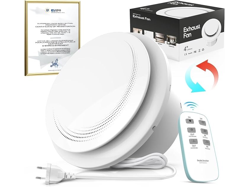 Ongebruikt, ok, werkt, 100 mm afzuigventilator, geluidsarm, krachtig en stil, tweewegs, 2 snelheden, met draadloze afstandsbediening, eenvoudig te installeren op raam, plafond, muur of in de badkamer, B0CSPQJBHR
