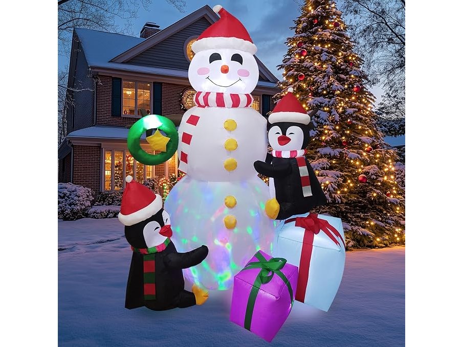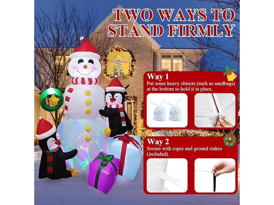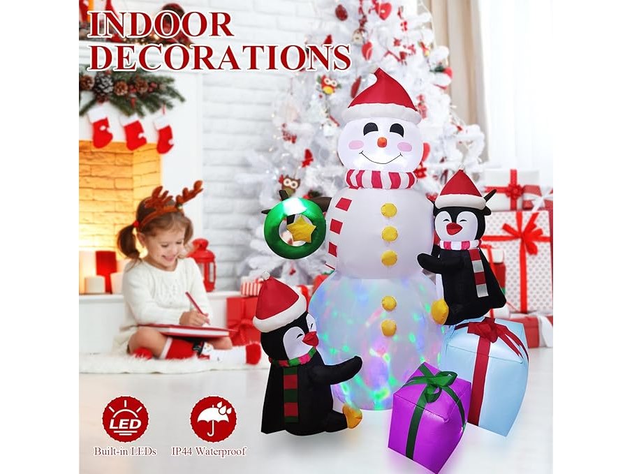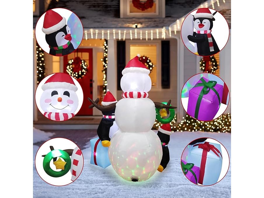 Ongebruikt, werkt, compleet, Opblaasbare sneeuwpop van 180 cm met pinguïns en cadeautjes, LED-verlichting, voor buitendecoratie. Opblaasbare sneeuwpop kerstdecoratie voor tuin, gazon en kerstfeest, B0DFQLQSFC