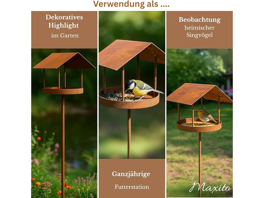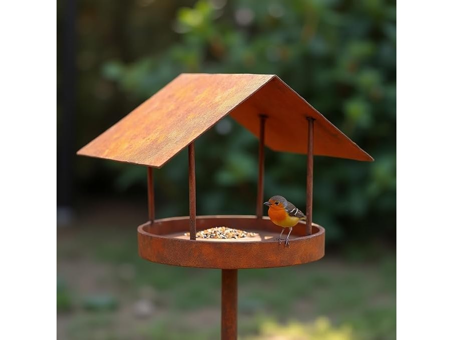 Ongebruikt, ok, compleet, Vogelhuisje met standaard, weerbestendig, 158 cm hoog, metaal, stevig, rustieke uitstraling, voederstation voor vogels, vogelhuisje, B0DQFBBNY8