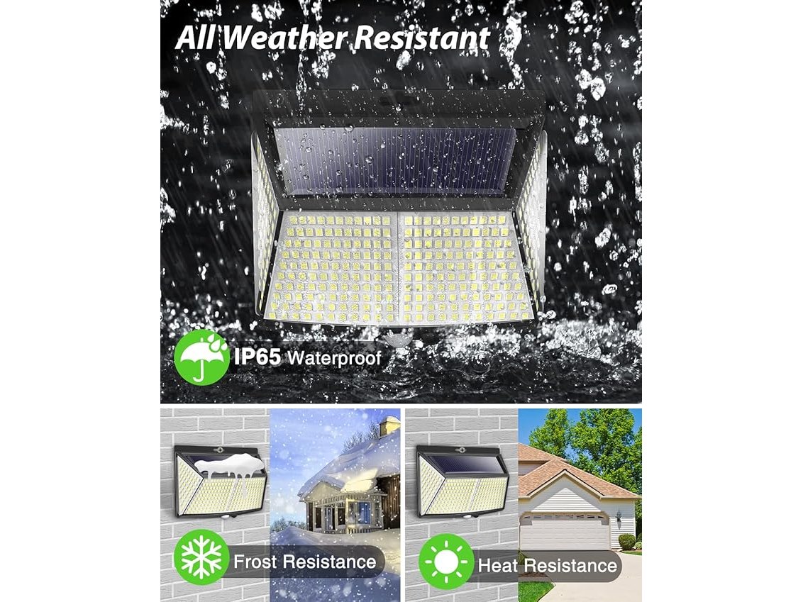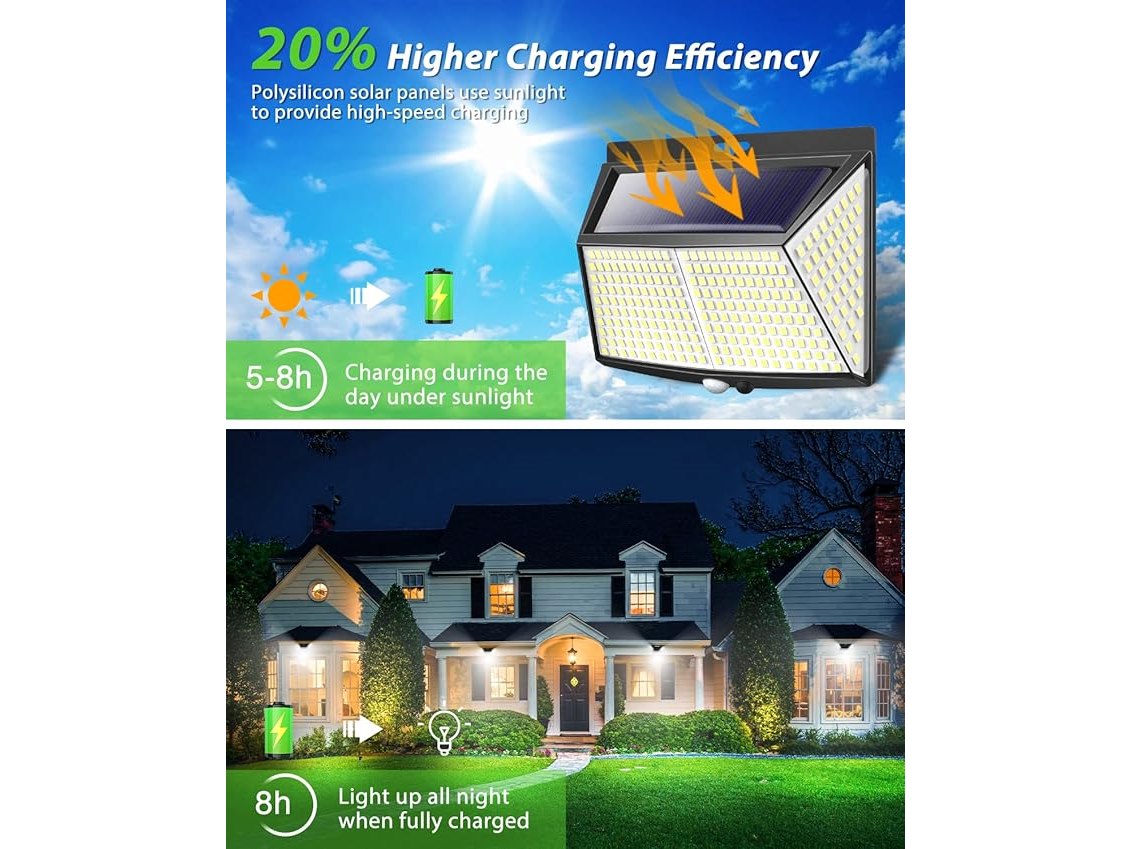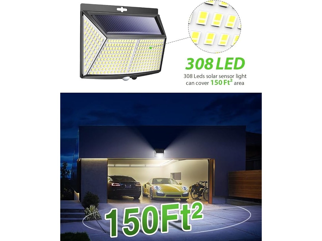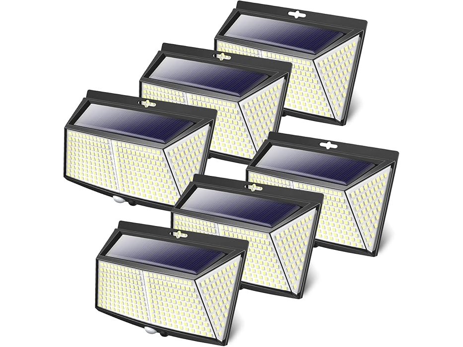 Ongebruikt, getest en werkend, compleet, LOTMOS Set van 6 solar lampen met bewegingssensor, 308 LED's, 3 standen, 270° LED, IP65, waterdichte wandlamp voor muur, paal, pad, B0BW46XWNG