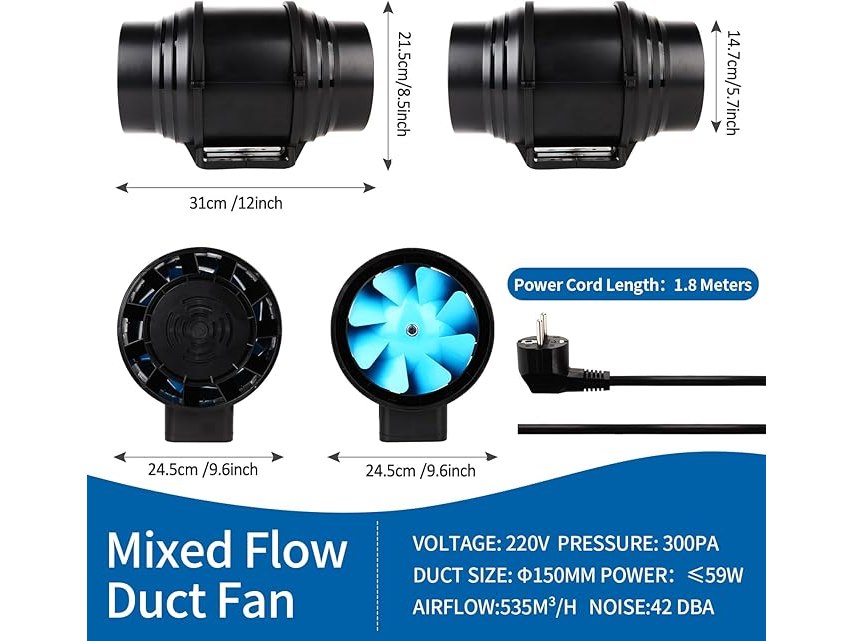 Ongeopend, Brogachy Verstelbare luchtafzuiger, 150 mm, afzuigventilator 535 m³/h, stille luchtafvoer, voor plantententen, hydrocultuur, keuken, badkamer, ventilatie.. [Energieklasse C] B0C6F52GK6