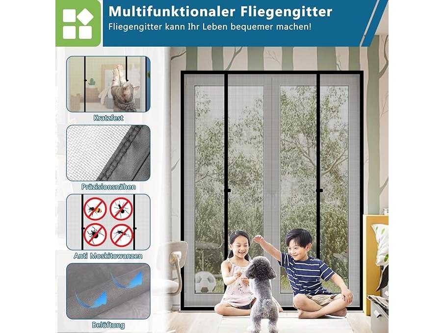 Ongebruikt, volledig, ok, HooTown magnetische hordeur, 170 x 212cm vliegenhor dubbele deur vliegenhor balkondeur autosluiting insectenhor balkondeur vliegengordijn voor raam, balkondeur, kelderdeur en terrasdeur,B0CKTC51Y7