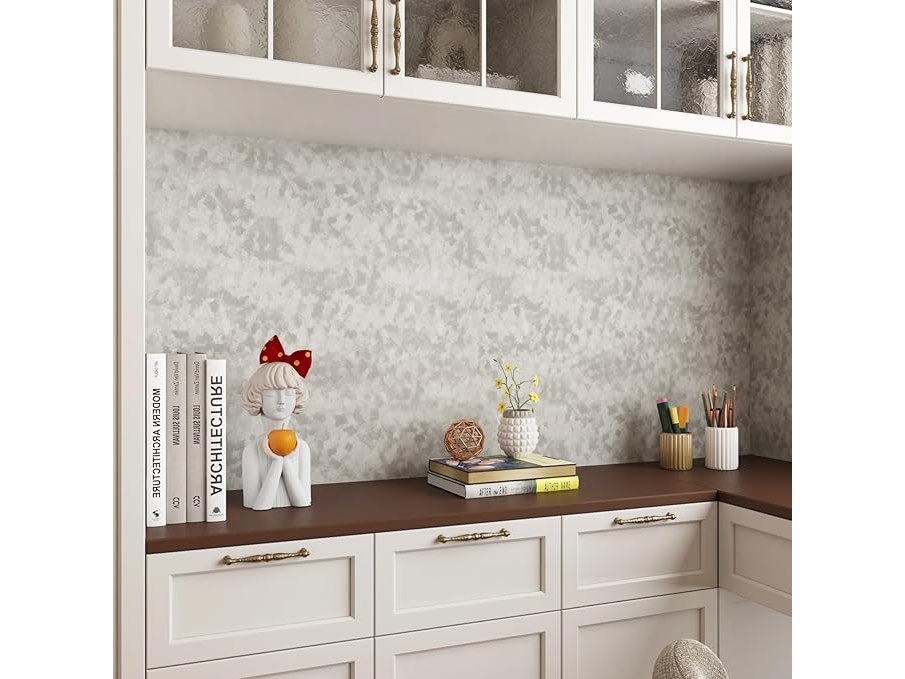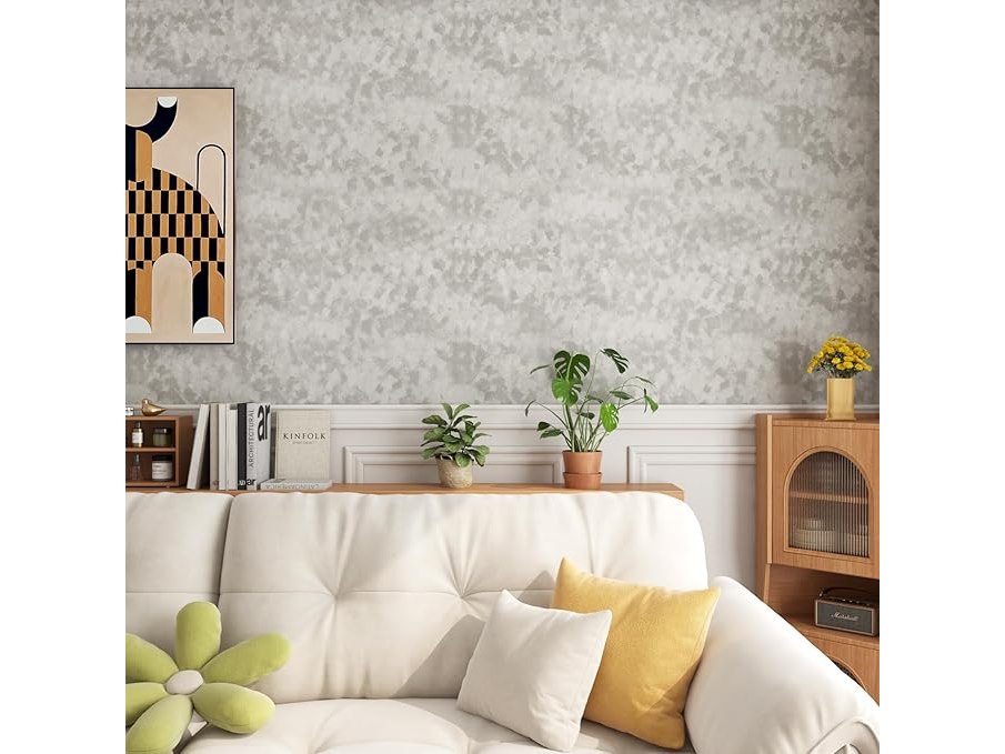 Ongeopend, in seal, 6 x ReWallpaper Stof Vlokken Behang Grijs Patroon 44.5cm×7m Zelfklevende Film Fluweel Stof Dik Behang Woonkamer Grijs Vintage Vlokken Stof Behang Meubilair Film Garderobe Achterwand Slaapkamer Gang, B0D91D3VMT
