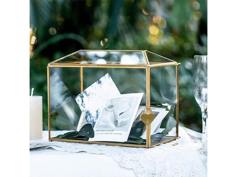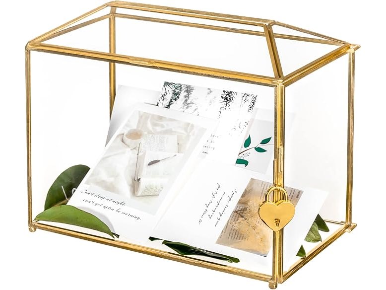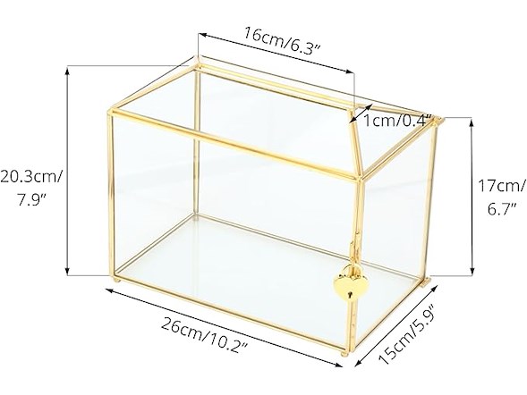 Ongebruikt, volledig, ok, NCYP 26 x 15 x 20,3 cm - Glazen kaartdoos met sleuf en slot, kleine geometrische decoratieve doos voor bruiloft, feestreceptie, donatie, aandenken, goud, handgemaakt (alleen glazen doos), B0812Z7M4L