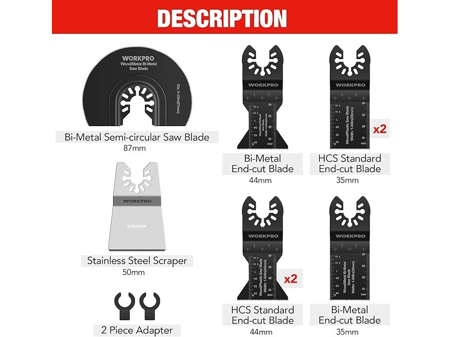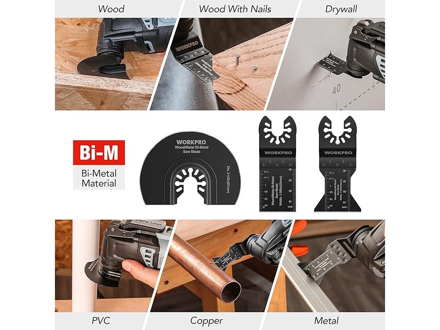 Ongebruikt, volledig, ok, WORKPRO Multifunctionele gereedschapsschijven 22 stuks, Bi-metaal materiaal oscillerende gereedschapsschijven, oscillerende accessoires voor metaal, hout, kunststof, gipsplaten, geschikt voor BOSCH, FEIN, Milwaukee, B0B41CJCZF
