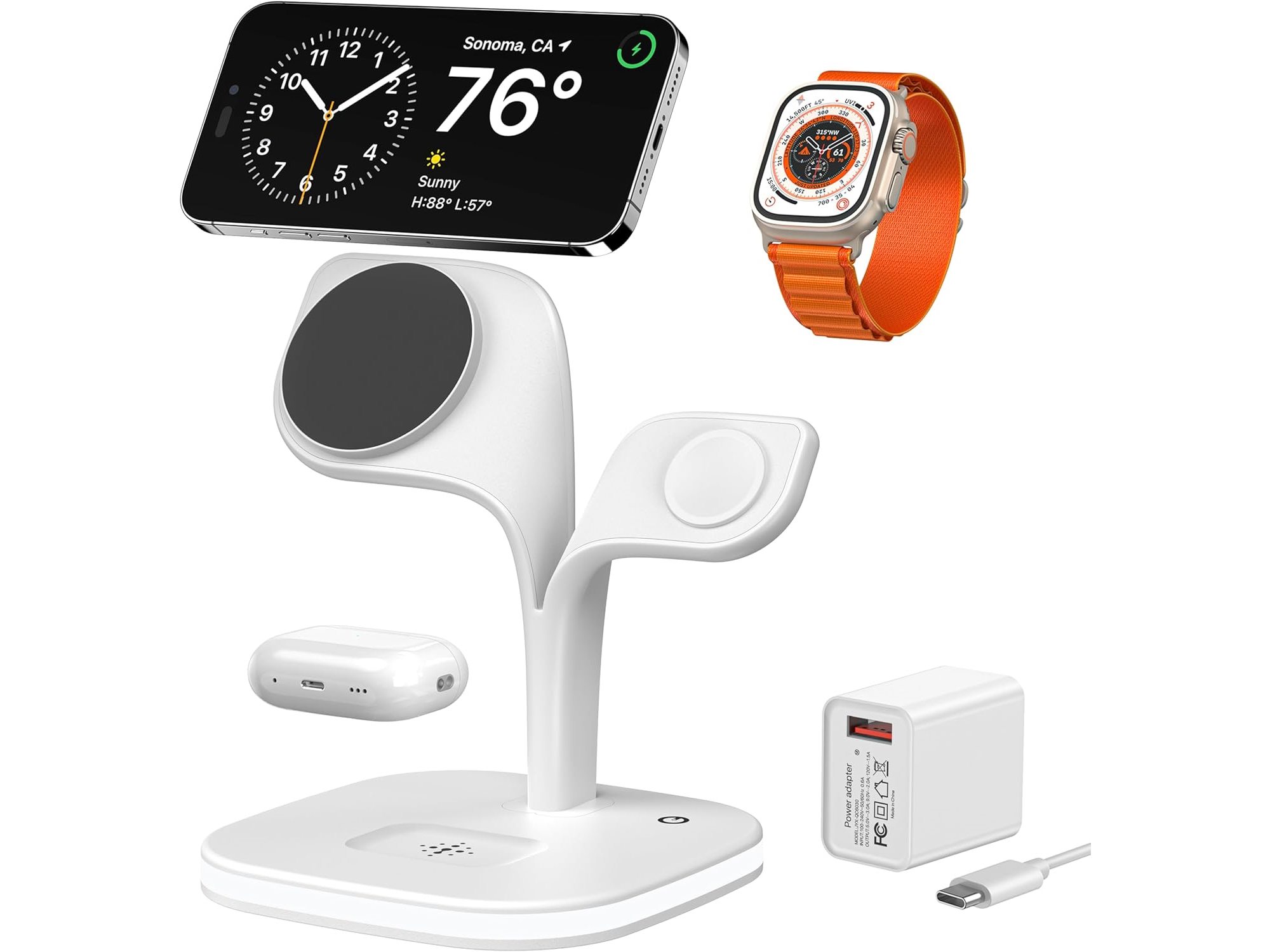 Ongebruikt, werkt,EXW voor Magsafe-opladerstandaard, oplaadstation voor meerdere apparaten, draadloze opladermet led en adapter (wit), B0B4VFR2MW