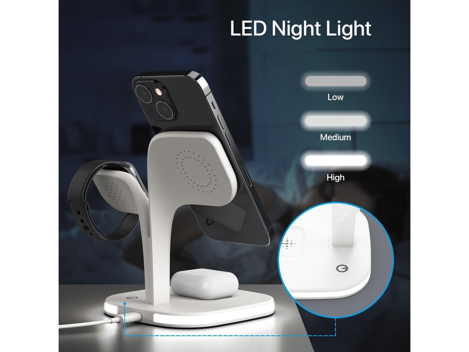 Ongebruikt, werkt,EXW voor Magsafe-opladerstandaard, oplaadstation voor meerdere apparaten, draadloze opladermet led en adapter (wit), B0B4VFR2MW